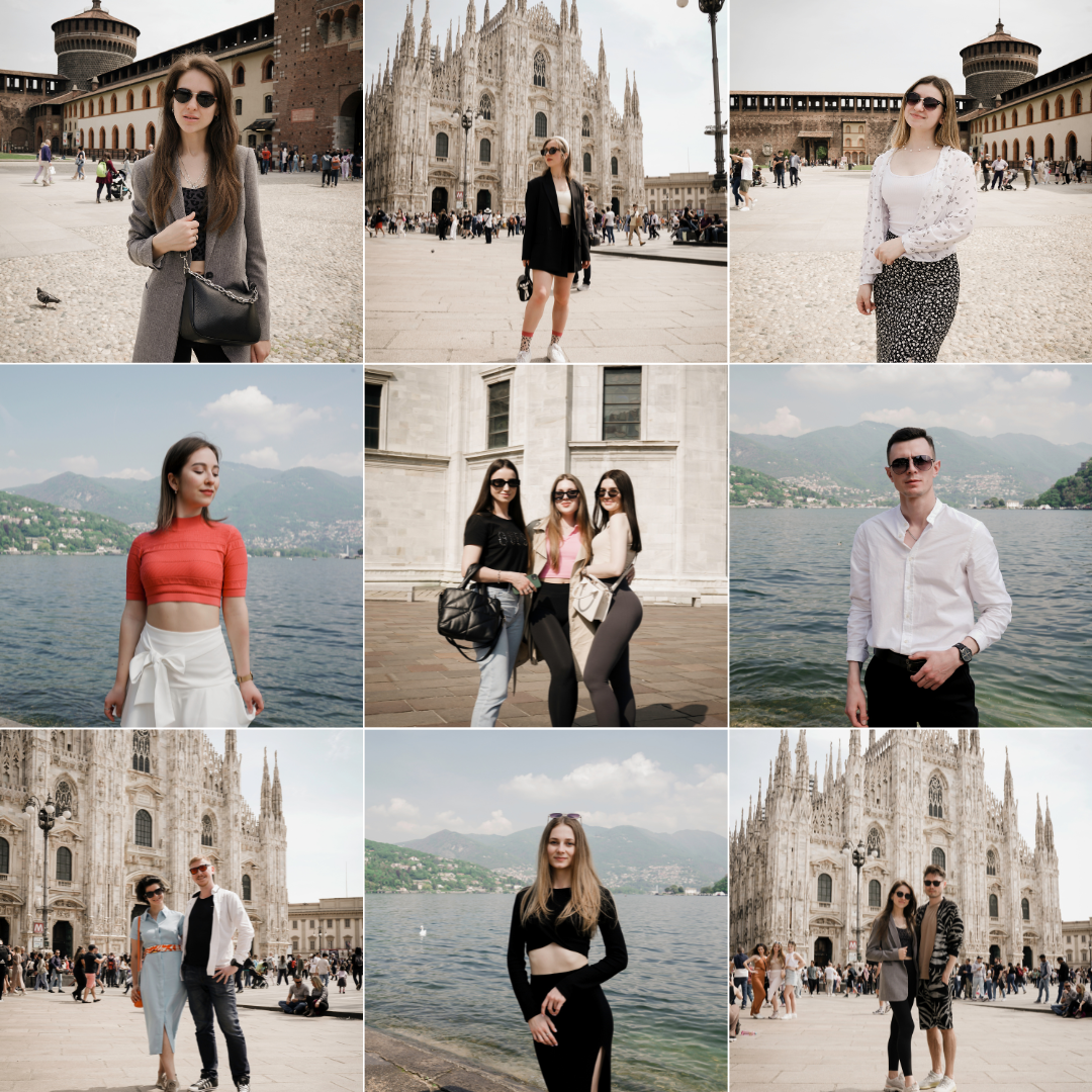 В воскресенье утром мы завтракаем, выселяемся из отеля, закидываем вещи в автобус и проводим ещё целый свободный день в Милане. А вечером перед выездом устраиваем уютную фотосессию на фоне знаменитого кафедрального собора Дуомо!